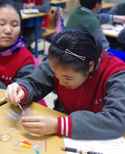 我們的課程主要分為三大主體部分,怎樣吃才健康?(實驗:調配繽紛飲料);健康零食與化妝食品(實驗:冰糖銀耳蓮子中二氧化硫的檢測);談“油”色變的地溝油(實驗:地溝油的檢測)。為中學生普及食品安全知識的同時,提高在校學生對于食品安全及營養(yǎng)方面的認知。