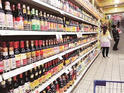看到有顧客前來,銷售人員立刻推薦說,這是本月新到貨的醬油品種,鹽分更少,更能保留食物原味,特別適用于蘸點、涼拌、淋菜或炒菜。