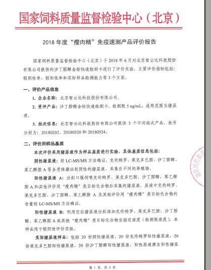 國(guó)家飼料質(zhì)量監(jiān)督檢驗(yàn)中心(北京)組織開(kāi)展的“瘦肉精”免疫速測(cè)產(chǎn)品評(píng)價(jià)工作的結(jié)果近日公布,智云達(dá)報(bào)送的克倫特羅、萊克多巴胺、沙丁胺醇三種免疫檢測(cè)卡的假陰性率、假陽(yáng)性率、實(shí)際樣品檢測(cè)能力,均滿足評(píng)價(jià)指標(biāo)要求!