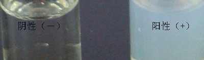 3min內(nèi),若上層出現(xiàn)黃白色渾濁,則可判定樣品中含有噻唑烷酮類(lèi)物質(zhì),為陽(yáng)性(+);否則判為陰性(-)。