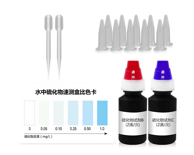 水中硫化物與檢測(cè)試劑反應(yīng)生成藍(lán)色化合物,含量越高藍(lán)色越深。
