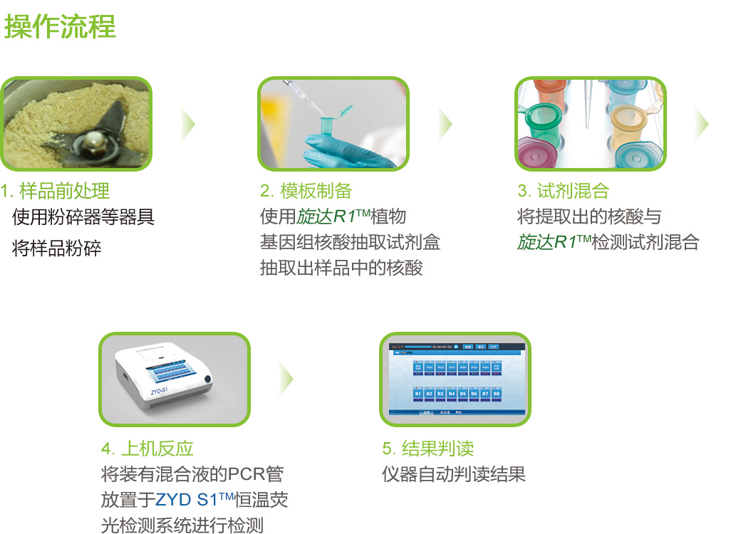旋達(dá)R1?轉(zhuǎn)基因檢測系列試劑,基于恒溫?cái)U(kuò)增技術(shù)平臺(tái),以特別設(shè)計(jì)的2對特異性識(shí)別檢測靶標(biāo)的獨(dú)有基因序列,能快速、準(zhǔn)確地鑒定檢測出樣品中是否含有特定轉(zhuǎn)基因成分。