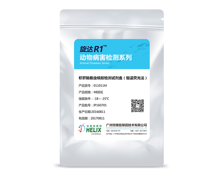 動物病害檢測系列基于獨特的恒溫熒光檢測技術,可針對水樣、餌料、活禽、水生動物及相關加工品等樣品中病原生物體的特異核酸片段進行擴增,通過實時擴增曲線判定結果。本產品用于對蝦肝腸胞蟲(EHP)的檢測,檢出限為103copies/μL寄生蟲基因組DNA。