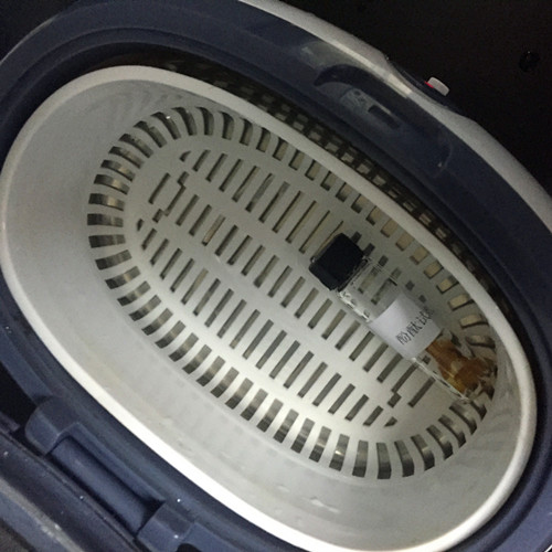 首先我們稱取1g剪碎的樣本,放入酚酞檢測試劑A中,超聲提取5min;